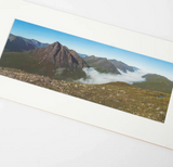 This photo of a cloud inversion from Beinn a'Chrulaiste shows the majestic Buachaille Etive Mor emerging above a sea of clouds. Buachaille Etive Mor, known as the "Great Herdsman of Etive," stands prominently in the frame. With the A82 winding through Glen Coe and a nod to James Bond's Skyfall, it's a dramatic addition to any space. Perfect for offices, hallways, or mountain-themed décor.