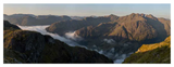 The early morning light highlights the peaks of Bidean nam Bian, the highest mountain in Argyll, and the Three Sisters of Glen Coe, known for their steep, dramatic slopes. This panoramic image showcases the peaks of Bidean nam Bian and the Three Sisters of Glen Coe at dawn, viewed from the top of Aonach Eagach. A cloud inversion in the valley below adds a unique, atmospheric touch. Perfect for spaces like living rooms, offices, or any area where you want to bring in a sense of natural beauty and depth.