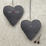 This delightful hanging grey heart is made from felt wool. It features embroidery details on both sides; a kiss for luck on one side and a red holly sprig on the other. It is perfect for hanging on your Christmas tree or to brighten up any room in your house.