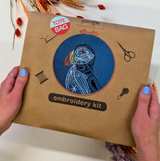 Sit back & enjoy this beginner tote bag embroidery kit with paisley puffin design.
