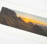 The photograph shows the dramatic landscape of The Quiraing with the hills north of Applecross and the Torridon Hills visible in the background. With 170 million year old dinosaur footprints found nearby, this sunrise at the Quiraing on Skye inspires a sense of awe and wonder for the landscape's rich history.