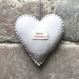 This delightful hanging white heart is made from felt wool.  It features embroidery details & a Merry Christmas message.  It is perfect for hanging on your Christmas tree or to brighten up any room in your house.