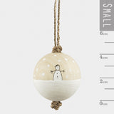 This wooden bauble is decorated with a snowy winter scene featuring cute snowmen and falling snow. It will add a touch of class to any Christmas tree or festive décor.