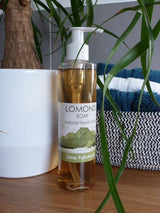 Liquid soap base is created in small batches using olive, coconut and castor oil and palm free glycerine and then add the essential oil blends. No foaming agents, thickeners, preservatives.