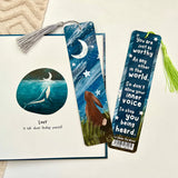 The bookmark measures approximately 50cm x 210cm (A5 height) and has a coloured tassel attached.