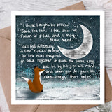 The 'Fox Under The Moon' artwork series is for all ages - it is inspired by the simplicity of everyday life, and the complicated emotions that go with it. This card is ideal for those difficult times in life when you can't quite find the words to show someone how important they are. We hope that this warm and whimsical world can bring some encouragement and love to those you care about.