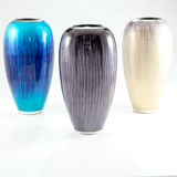 These stunning vases are 100% Fair Trade and hand made by artisans. The products are made from recycled aluminium. The products are cast, then rough polished and enamelled before being beautifully finished with a smooth polish. Every one of these items is individually made to the very highest quality with a hand finished colour enamel, because of this each piece will have slight differences to each other. The translucent colour gives a rich and deep colour, through to the recycled aluminium beneath.