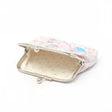 This pastel lilac fairy princess printed fabric coin purse has a silver ball snap clasp.