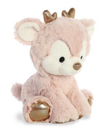 Glitzy Tots Pink Reindeer Soft Toy is a super soft and cuddly and will make the perfect gift. She has beautiful rose fur with contrasting sparkling gold feet, nose & horns which make her all ready for the Christmas party season.