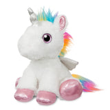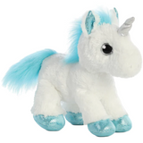 Our gorgeous unicorns have beautiful plush bodies with coloured manes and tails which are super-soft and perfect for cuddles. They have gorgeous sparkly material on their hooves and ears which compliment their beautiful sparkly eyes.
