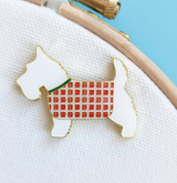 A gorgeous magnetic needle minder, based on the gorgeous Scottie dog, to keep your needles safe while you work. The needle minder is enamel, with gold accents highlighting the Scottie dog design & is held on the fabric with two magnets. Simply separate the magnets, sandwich your fabric between them, and stick your needle to it whenever it's not in use.