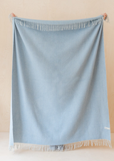 Large Recycled Wool Waffle Blanket in Azure