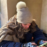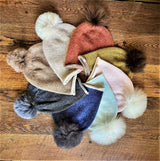 Super silky and warm alpaca jersey beanies are beautifully made by artisans in Peru and finished with a contrasting rolled edge and stunning alpaca fur pom pom. The alpaca pom pom has a snap-on closure so you can remove as necessary.