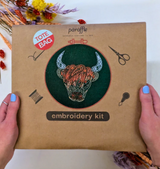 Sit back & enjoy this beginner tote bag embroidery kit with paisley highland cow design.